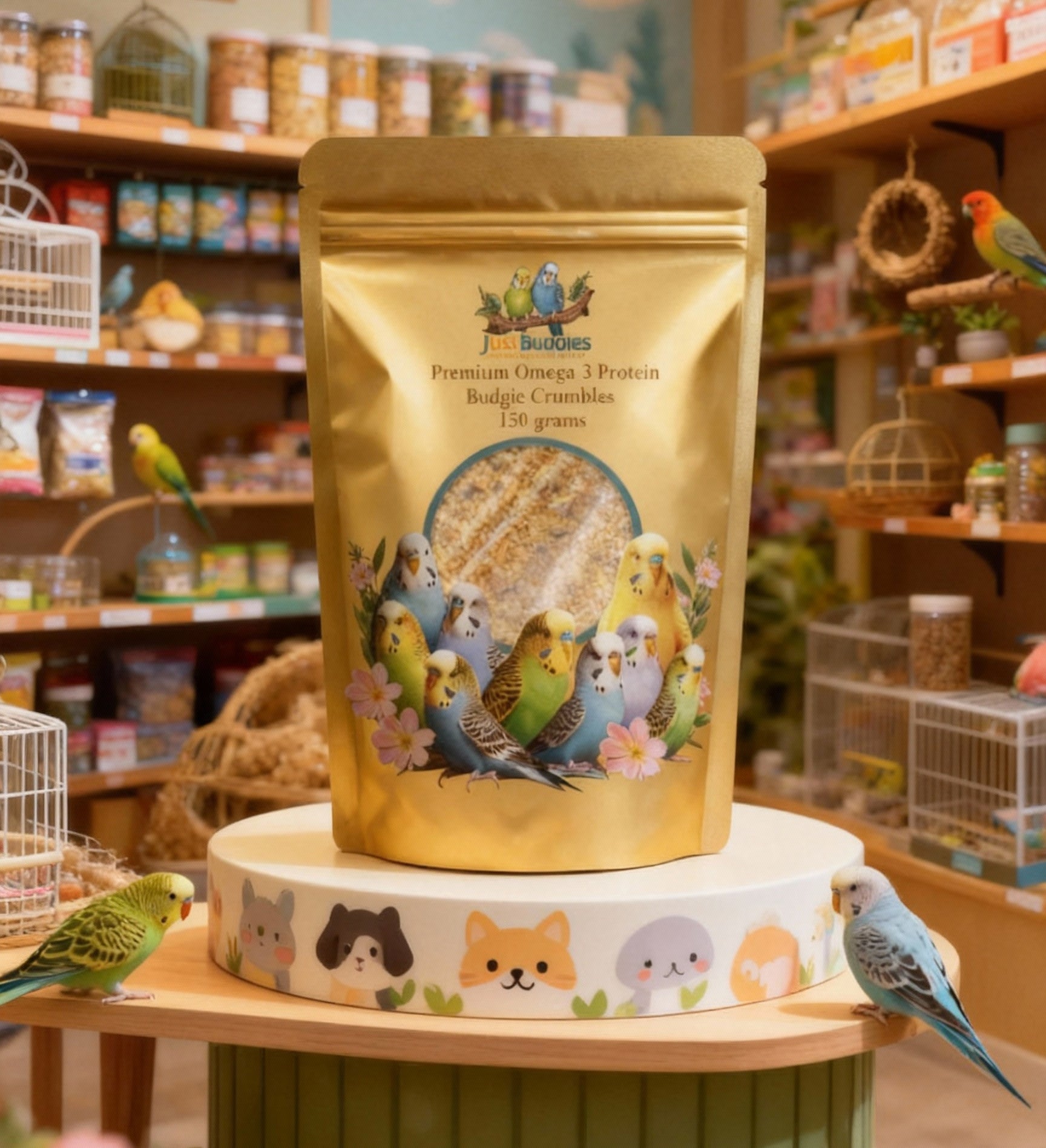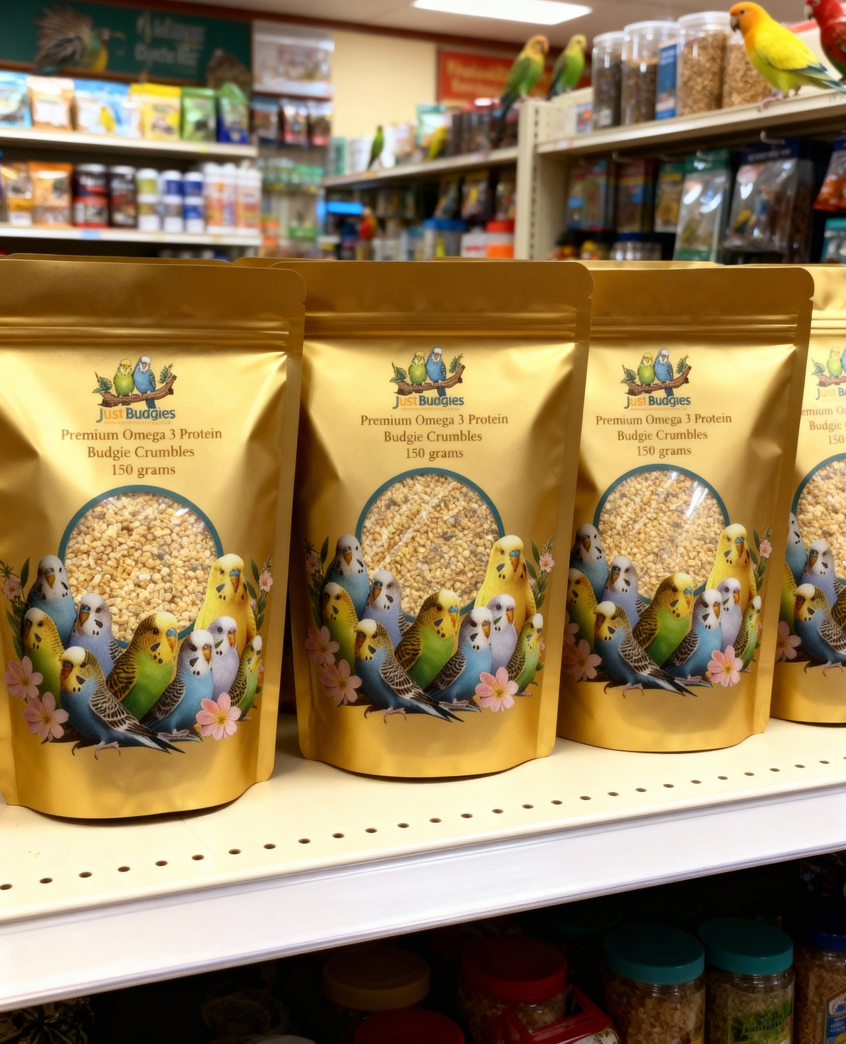 Why protein? – All birds but especially budgies need a balanced diet and that should include protein. You can give your birds protein in the form of hard-boiled egg or scrambled egg, but this is not always practical and is time-consuming. The easy alternative is a level teaspoon of Just Budgies Bird Protein Boost twice a week to keep their protein levels in balance. In conjunction with Just Budgies Fresh Gold Pack Seed and fresh vegetables, this combined seed, veg, protein boost gives budgies (in fact, all birds), the best possible balanced diet.